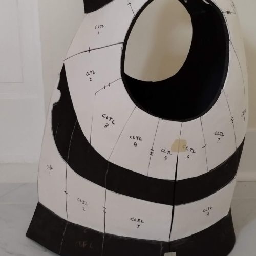 This is the base pattern of the Rathian style cuirass. The cuirass template makes for an excellent foundation for many different styles of chest armor. Made out of 4mm-6mm foam, it can be used for LARP, cosplay, or any other costumed occasion. The pattern is fairly self-explanatory, just tape all the pages together and cut out the shapes. Each row contains 4 pages, and there are four rows, so the 16 sheets will make a 4x4.