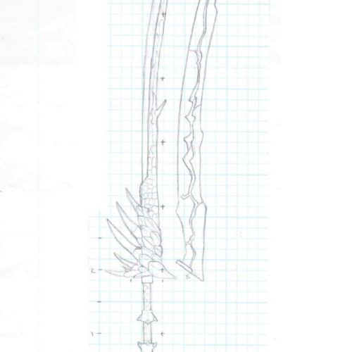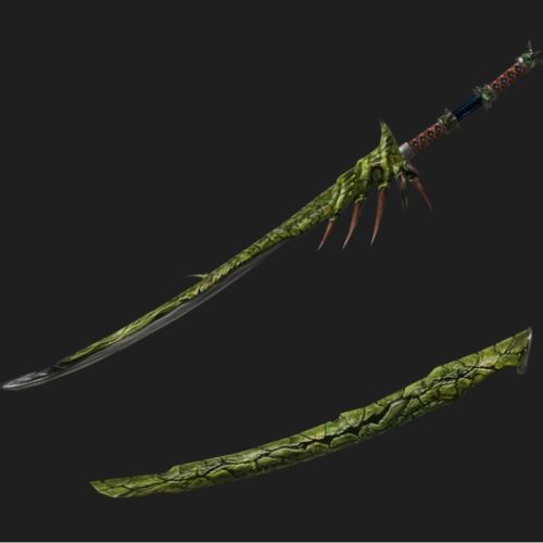 This is the pattern for the iconic Rath Longsword, useful for all Rathalos and Rathian longswords. Printed at original settings, the sword will measure 7 feet long in total. The sheath pattern is also included.