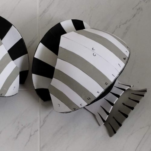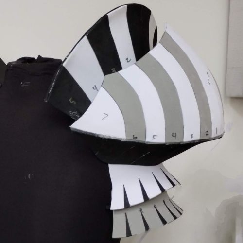 I recommend using 4mm foam. The pauldrons are composed of three main parts, the top, middle, and center. Any combination of the parts makes for a pretty neat set of pauldrons. They are a little tricky to glue together, so I recommend using the masking tape and hot glue method.
