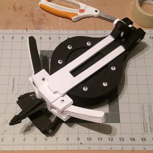 Regarding materials, it's totally fine to use different materials with different thicknesses, but you will have to make the adjustments to the sizes of the parts. Except where marked with an asterisk*, all of the parts are cut from 6mm foam. Some parts, like the moving arms that the horns attach to, require gluing together multiple cut-outs to achieve the thicknesses suggested. Each of the three moving arms is made of 3 layers of part 'k'. Part 'c' also calls for 3 layers for each. Again, results will vary depending on material. Even material sold as "10mm" might vary in thickness.